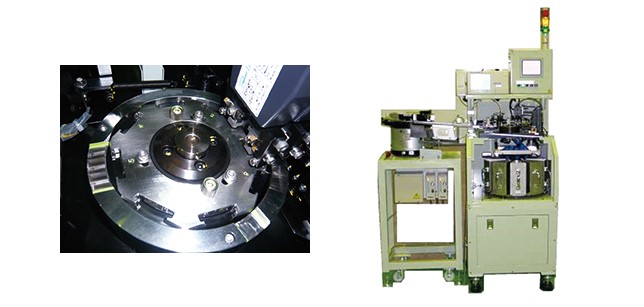 This machine uses the internal diameter of 4 points of the casing pipe of the scroll compressor, a straight line connecting the virtual axis of two points of inner diameter as a reference, to measure the misalignment amount between the reference and the object that is the virtual axis of the inner diameter with one place and judges OK/NG.