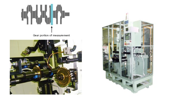 This machine measures the O.B.D., run out and dent for balance shaft gear of crankshaft.