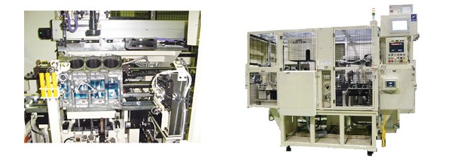 This machine measures the lifter hole inner diameter, seat hole inner diameter and guide hole inner diameter of intake and exhaust cylinder head by an electric micrometer, and makes a judgement OK or NG.