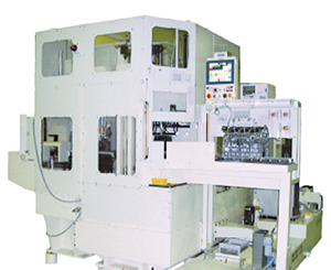 This machine performs deburring of crank hole after the boring process of cylinder block is finished.