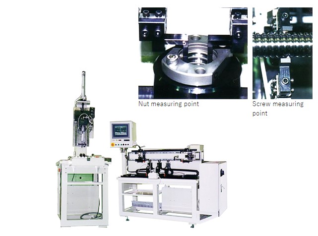 This machine measures the ball screw nut and screw O. B. D. (over ball detector) dimensions by an electric micrometer, and selects the ball properly.