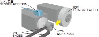 PULCOM GE series detect the contact between the grinding wheel and the work piece and send the signal to NC immediately. Using this signal, NC can increace the feed rate of the air cutting to reduce the cycle time. And also NC can grind the constant amount from the surface of the workpiece.