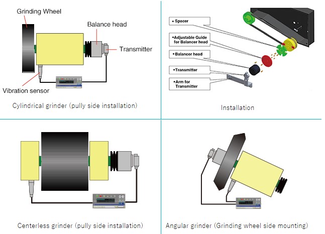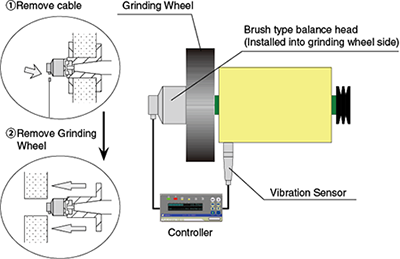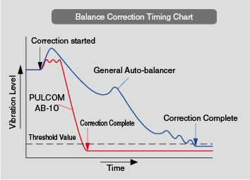 PULCOM AB-10 observes vibration of grinding table, and if the vibration level becomes more than the threshold setting value, signal will be sent to NC to notify the operator that correction of balancing is needed. This system prevents production of defects caused by unbalanced grinding wheel.