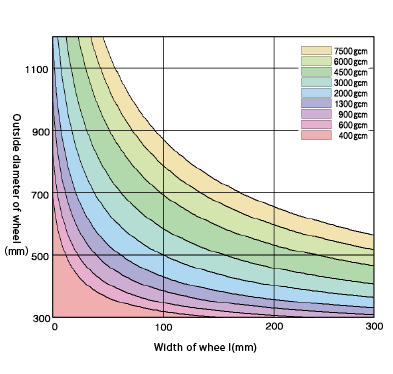 Following drawing is the Balance capacity chart of a nomal grindstone. Please use this drawing as a reference of Balance capacity selection.