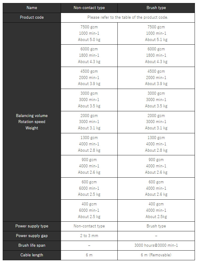 Balance head cable for this head type is detachable. Only one controller is required to use multiple number of balance heads. (To avoid wearing of brushes, detach balance head cable and cap the connector when balancing is finished.)